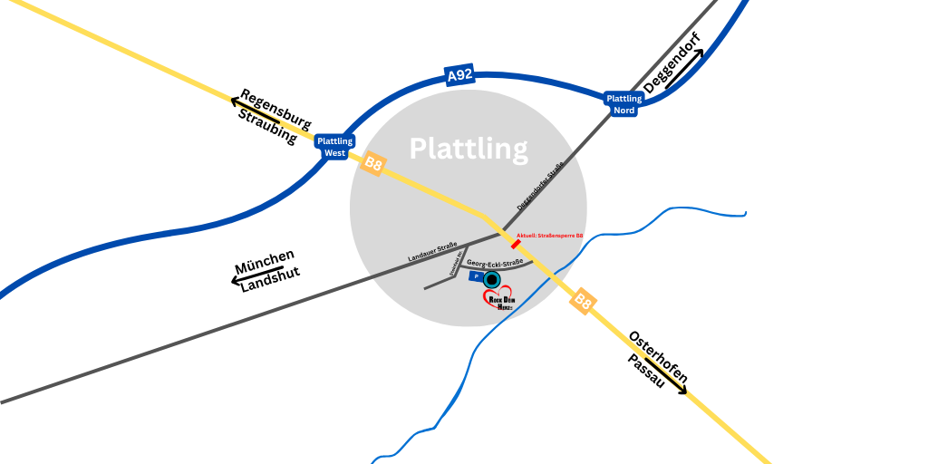 🛣️ Anfahrt zum Rock Dein Herz Benefizkonzert 2025📍 Georg-Eckl-Straße 26, 94447 Plattling Der Veranstaltungsort ist gut erreichbar – sowohl über